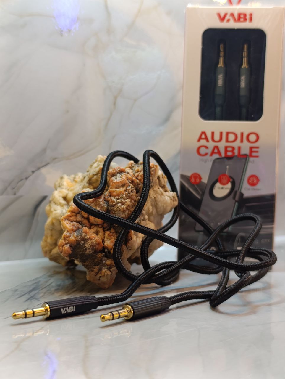آیوایکس | AUX با برند وابی | VABi که یکی از خوش قیمت ترین و به صرفه در خرید ترین آیوایکس حال حاظر بازار با جنس برزنتی و مناسب برای تلفن همراه هایی که دارای جک 3/5 هستند می باشد.